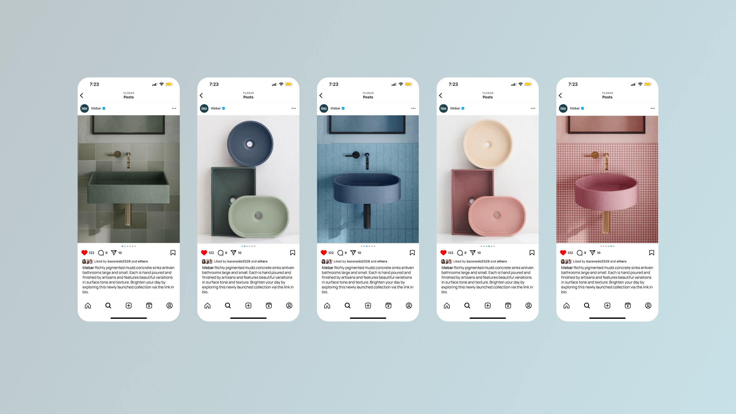Campaign for the partnership of TileBar and Mudd Concrete Sinks. It served as a moment for a pop of color, as well as the first major campaign for the TileBar Bath division.